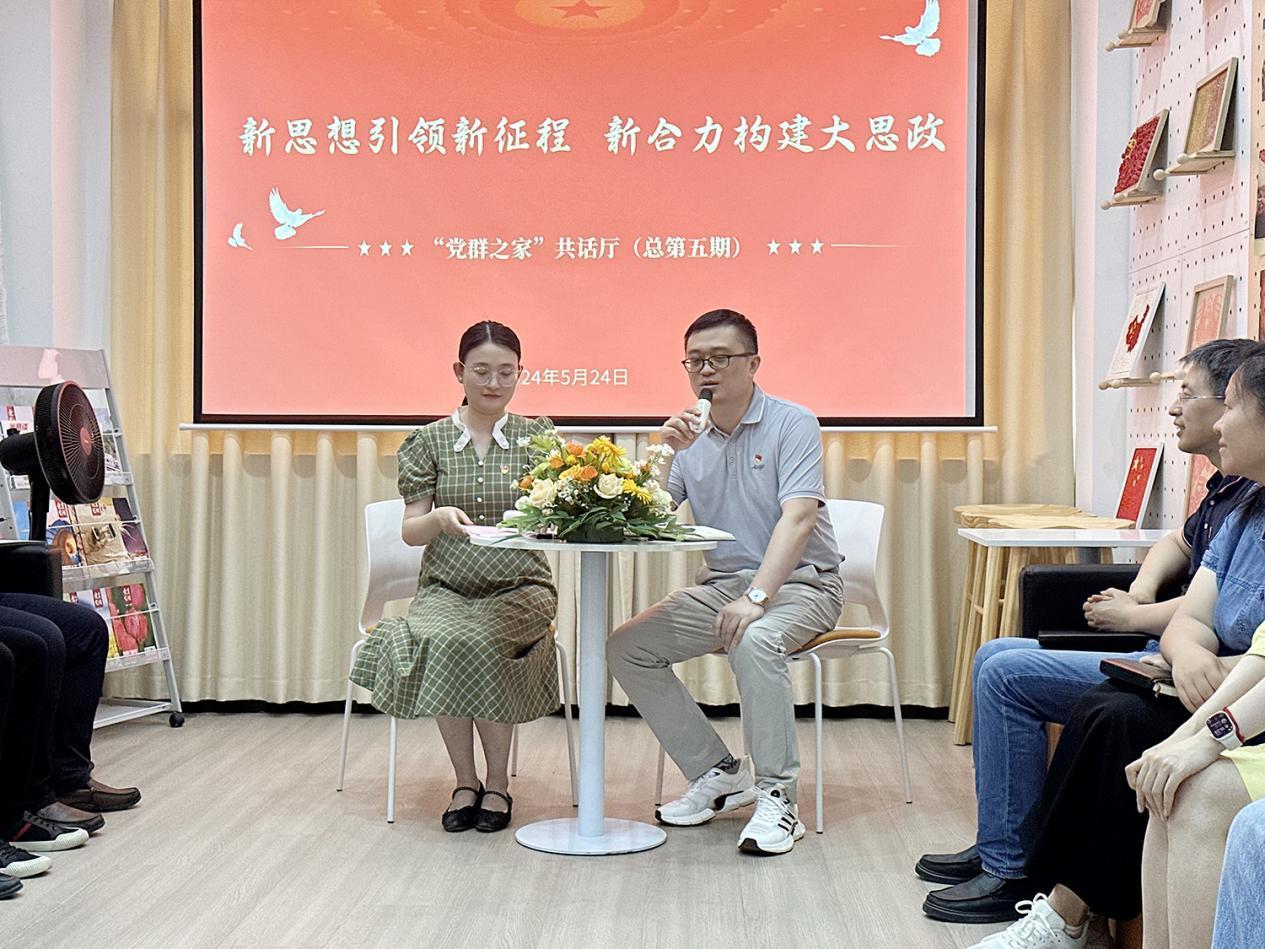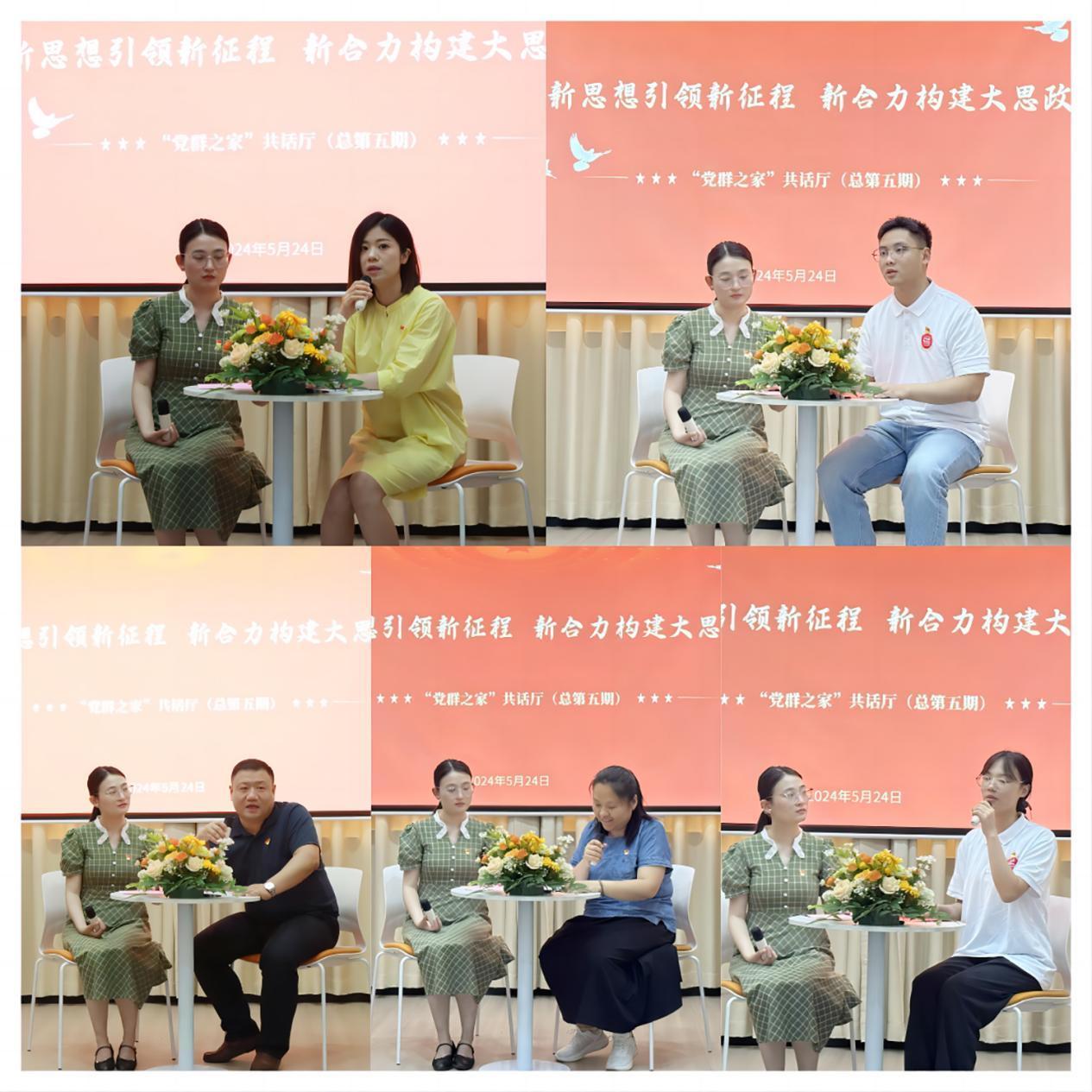 在党群共话环节,师生代表围绕主题进行发言。员工党员代表雷嘉同学围绕生态文明建设以及如何养成节约、节制的生态生活方式讲述了最令她印象深刻的一节思政课;思政课教师黄杉从思政小课堂和社会大课堂相结合角度探讨“大思政课”建设如何在“活”内容上下功夫;“邮”我说法普法宣讲团副团长严晨艺同学讲述了普法宣传中的动人小故事,以大思政思维、法治思维分析与研究问题,将理论知识转化为实践能力;思政课教师郑翔云提出通过与员工共情、讲有温度的故事、用好翻转课堂等方式真正找准员工的关切点、需求点、兴趣点,从而实现思政课的引人入胜;教务部副部长熊少巍从“道、法、术、器”四个方面分享了作为一名教师如何结合学科专业特色,进行“课程思政”理论与实践的探索。
