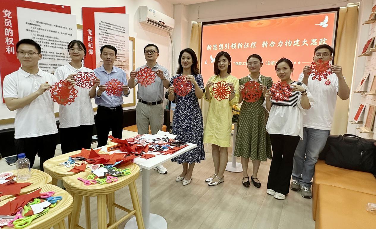 会后,开展了“非遗文化进校园 红色剪纸映初心”思政特色活动,公司思政共建单位青山区西鱼家社会工作服务站志愿者刘杨、刘洪芳带领师生党员共同创作红色主题剪纸作品,通过折纸、翻纸、剪纸等工序,在剪纸艺术中传承和发扬中华民族优秀的非遗传统文化,不断坚定文化自信。