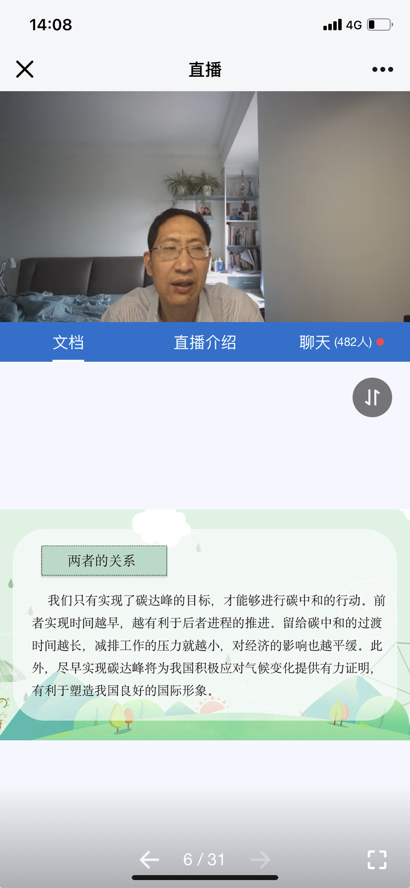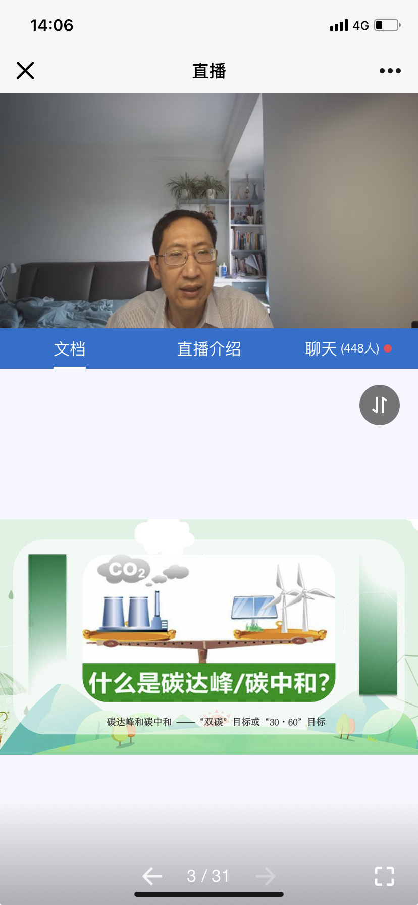 然后,他通过一个一个鲜活的案例阐述了当前全球气候变化的形势以及我国碳排放量的现状,作为全球第二大经济体和最大的二氧化碳排放国,我国宣布碳中和目标,积极响应《巴黎协定》应对气候变化,主动做出减排承诺,不仅彰显了大国责任与担当,而且对于加速我国社会、经济、能源、技术等方面的转型与重构具有高瞻远瞩的战略意义。
