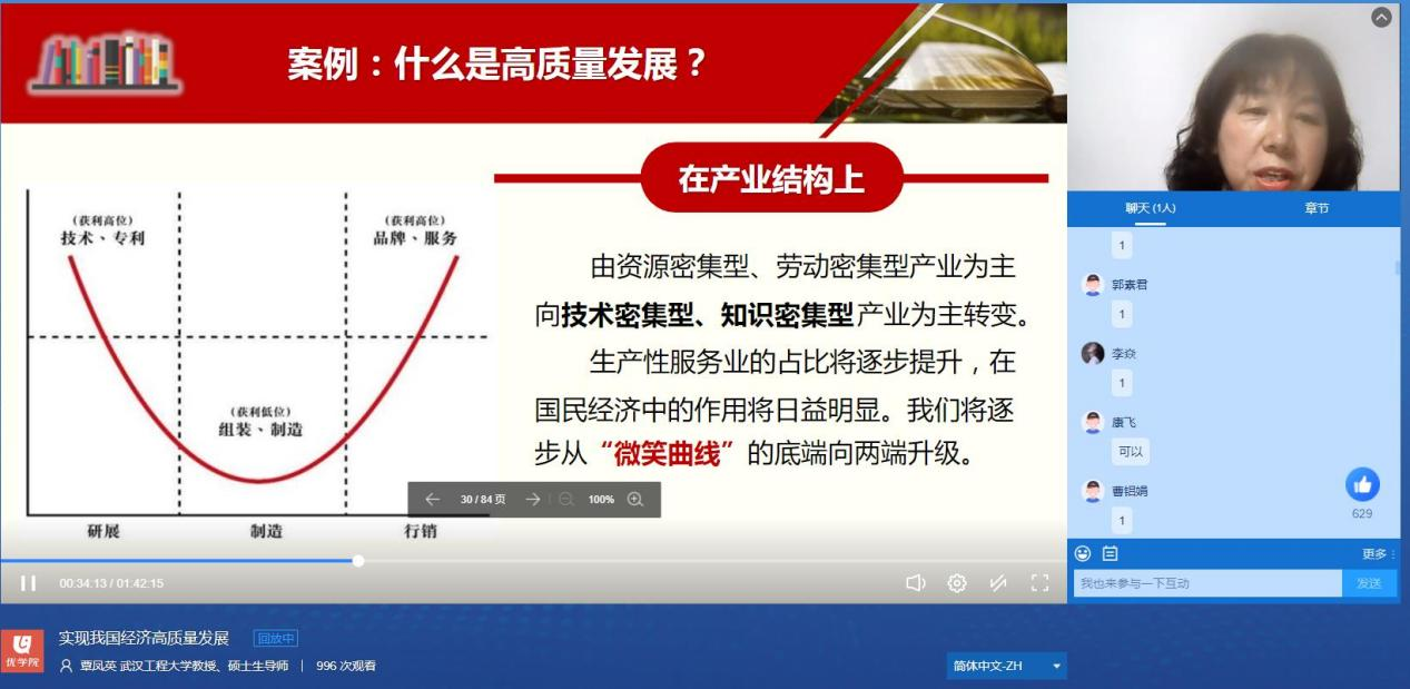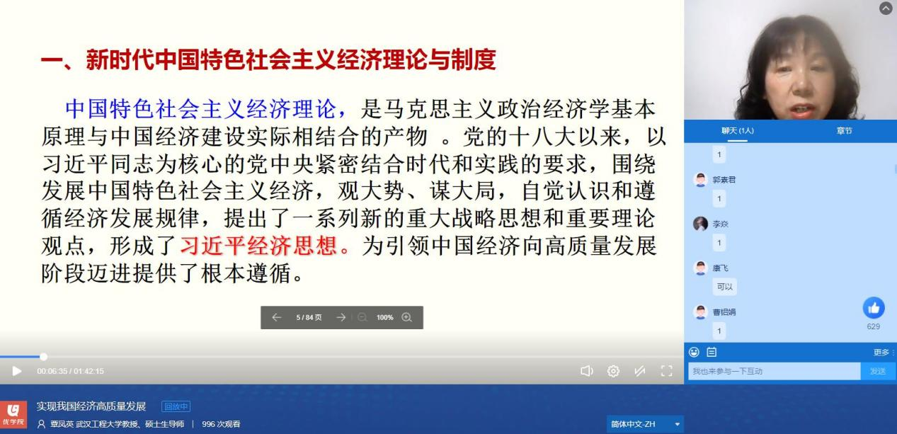 (通讯员:洪友春)5月11日下午,党委宣传部、三亿体育和教务部联合举办了邮电大讲堂·思政专场讲座。武汉工程大学三亿体育覃凤英教授受邀为公司师生作题为《实现我国经济高质量发展》的专题报告。本次报告采取线上形式在优公司平台上进行,公司2020级员工、全体思政课教师在优公司平台全程聆听。