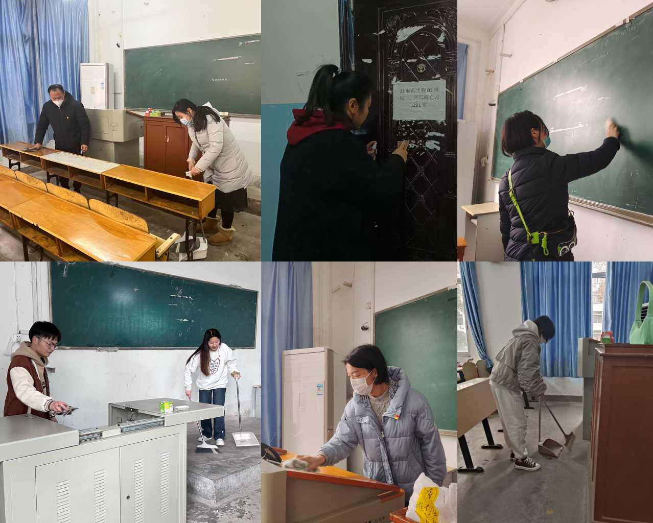 全体师生党员齐聚一号教学楼,对各教室进行细致地卫生打扫。他们低头俯身、挥洒汗水,用自己的双手清理垃圾与灰尘、铲除教学楼道间小广告,为广老员工增添一份干净与整洁,营造一个温馨的学习环境。