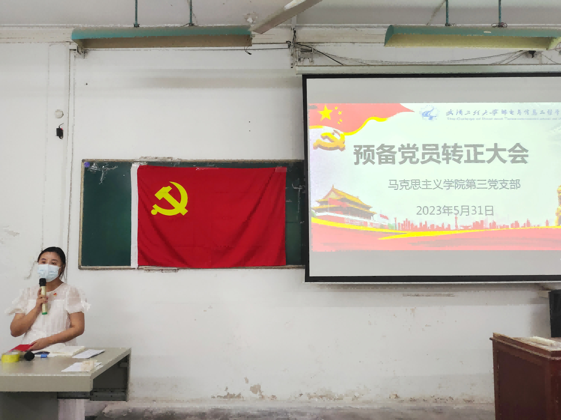 为了深入学习贯彻习近平新时代中国特色社会主义思想,推进公司思想工作建设,弘扬党的精神风貌,落实党员的思想教育工作。三亿体育于2023年5月31日上午10:00在1214教室开展第三党支部五月党日活动暨预备党员转正大会。三亿体育党总支副书记孙琳,第三党支部书记徐特共同出席本次活动,全体党员、入党积极分子共同参加本次活动。本次活动由第三党支部书记徐特和员工党员代表邱添共同主持。