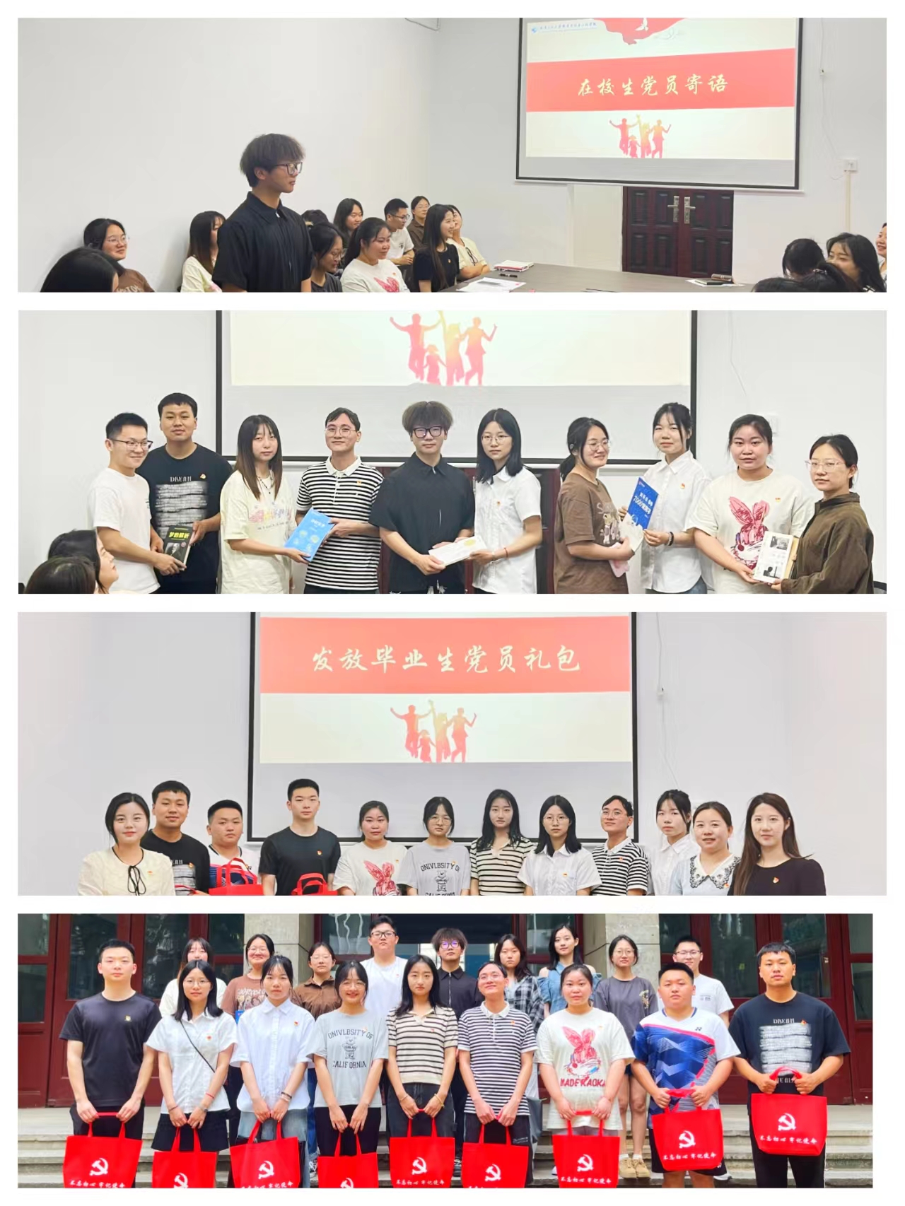 活动中,徐书记、孙书记为毕业生党员赠送党员大礼包;在校生党员代表为毕业生党员送上美好的祝愿。毕业生党员向在校生党员赠送精心挑选的书籍,希望他们努力学习,展望未来!徐特老师详细说明了党组织关系转接注意事项,强调党组织关系及时转接的重要性,为毕业生党员答疑解惑。