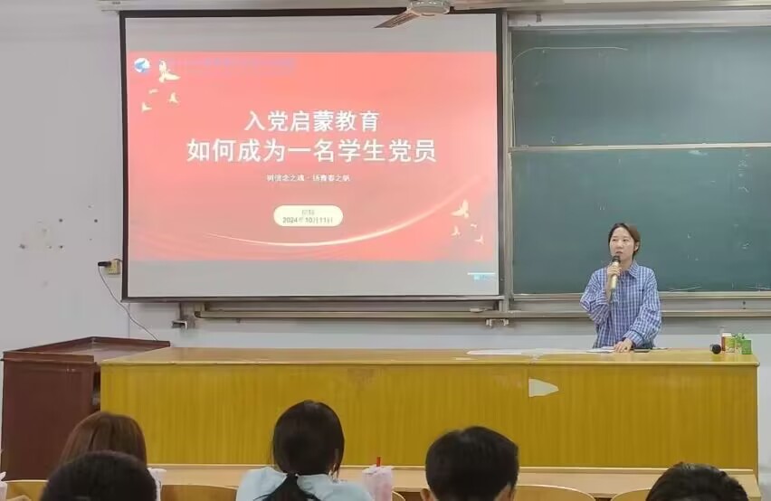 2024年10月11日晚,三亿体育党总支于1219教室召开24级新生入党启蒙专题培训——如何成为一名员工党员,本次讲座由党务干事徐特主讲,她向新生介绍了发展党员的流程与要求,对入党申请条件、入党程序、党员发展各阶段任务进行了详细说明,着重围绕思想政治、学业发展、实习实践等方面强调了成为一名合格党员需要具备的综合素养。她教育引导新生坚持马克思主义指导地位,坚持中国共产党的全面领导,坚定中国特色社会主义理想信念,正确认识时代责任和历史使命,端正入党动机,怀抱梦想脚踏实地勤奋学习,努力实现个人人生价值,坚定理想信念,奋斗激荡青春。结合入党启蒙专题培训,组织员工党员分批次带领2024级新生参观“初心.党员红色驿站”,讲授《党史微党课》,观看一场红色电影。