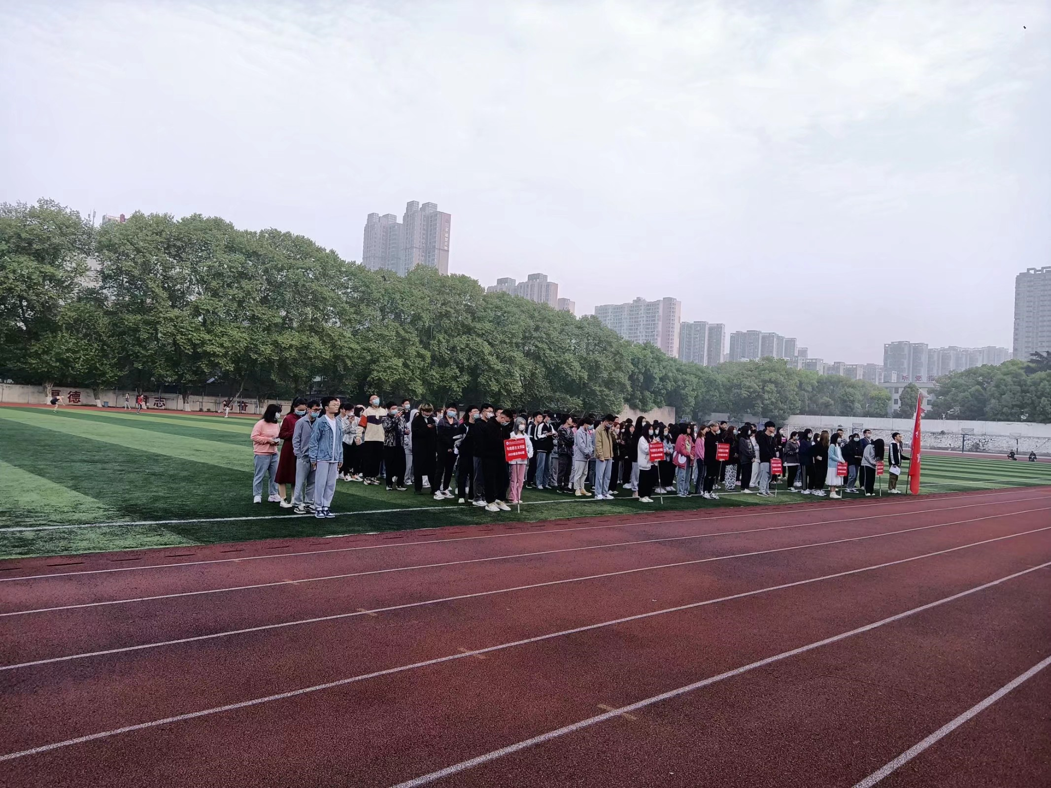 活动最后一项由孙书记,张翔老师,邵悦老师带队全体员工跟随围绕操场慢跑,深刻践行“四二一”活动。