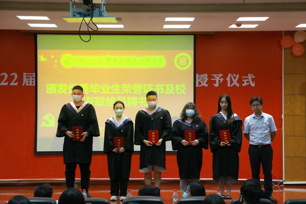 三亿体育党总支书记徐章宣读《关于表彰2022届优秀毕业生的决定》、《关于2022届毕业生优秀学士学位论文表彰决定》及《关于聘任2022届员工联络员的决定》。