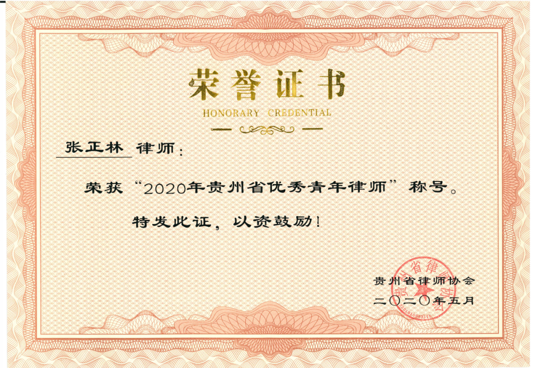 2020年5月,荣获“2020年贵州省优秀青年律师”称号。