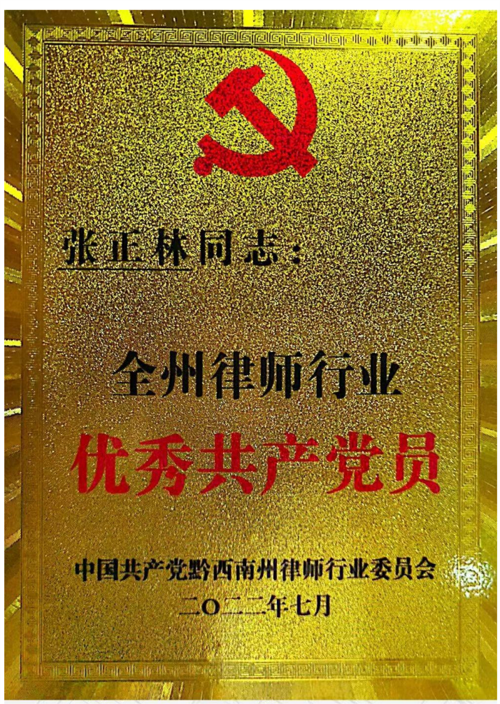 2022年7月,被中共贵州省黔西南州律师行业委员会评为“优秀共产党员”。