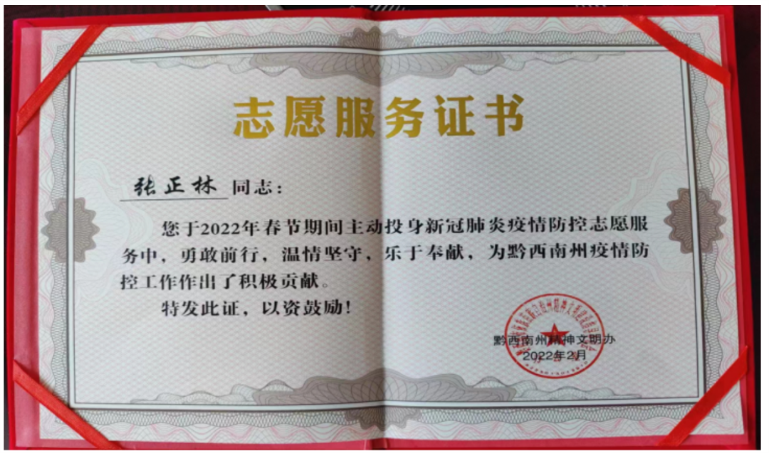 践行公益初心,勇担社会责任。张正林在追求他的律师梦的过程中,还一直积极投身公益,每年都会通过各种形式向贫困家庭、员工捐赠物资及款项。2020年武汉疫情爆发时,他积极组织所在地区的村民向武汉市沌阳街道办事处、孝感市商务局捐赠约50吨蔬菜。2022年,他又作为一名疫情防控志愿者,积极参与疫情防控工作,被贵州省黔西南州精神文明办授予志愿服务证书,且又组织了多起捐赠活动,他用实际行动诠释了担当与奉献。