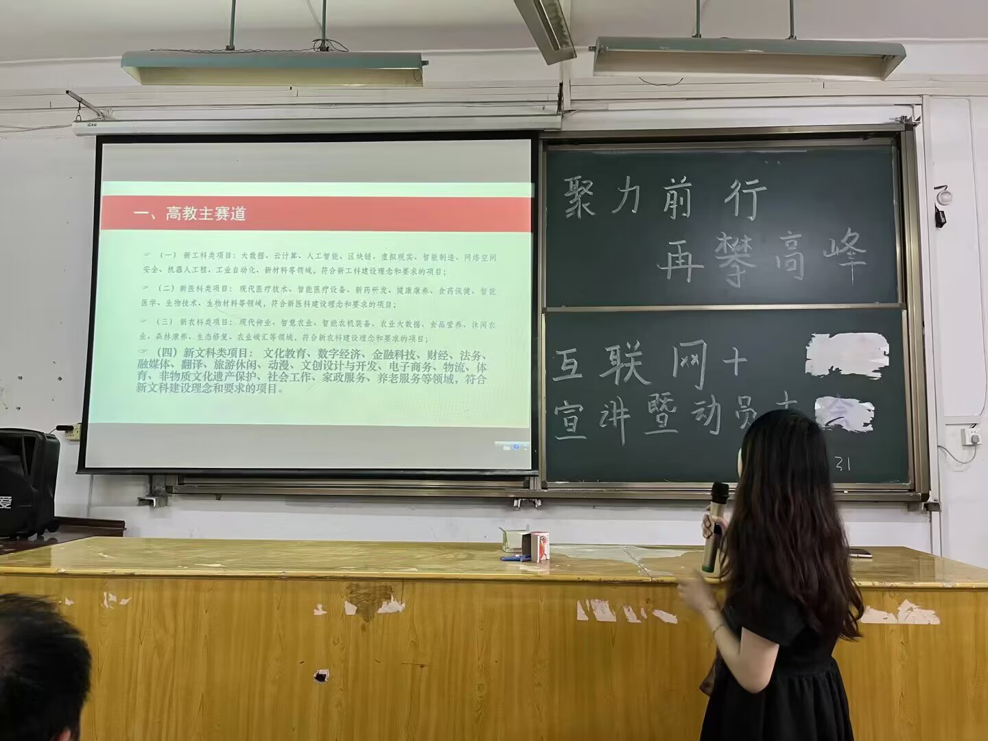 (通讯员 向焱心 摄影员 徐帆)为进一步激发公司员工创新创业热情,推进“以赛促教、以赛促学、以赛促创”,提升老员工创新创业能力,三亿体育于2023年5月31日中午12:40在1教1219举办“聚力前行,再攀高峰”互联网+宣讲暨动员大会,党总支副书记孙琳,三亿体育团总支书记张翔,出席本次宣讲会,三亿体育全体班委,团总支员工会全体成员参加。本次宣讲会由22级法学02班彭琳主持。