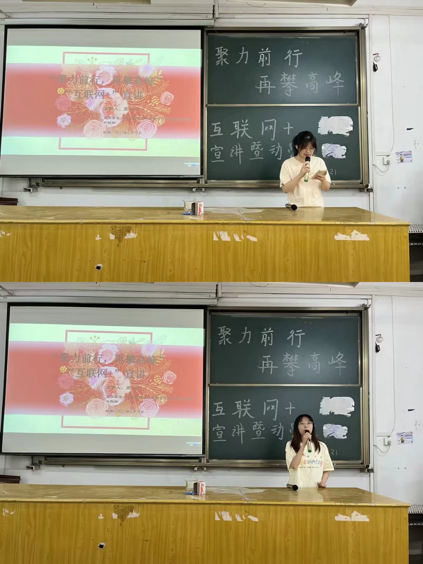 会议伊始,宣讲人21级法学01班王丹向各位同学对于“互联网+”的内容、举办目的、以及大赛的注意事项做出了详细说明。随后,宣讲人从赛制要求及赛道规则、红旅赛道情况解析、项目打磨及奖项设置等多个方面解读大赛政策。让同学们对“互联网+”创新创业大赛有了更深的理解,同时也提高了同学们参加比赛的积极性。