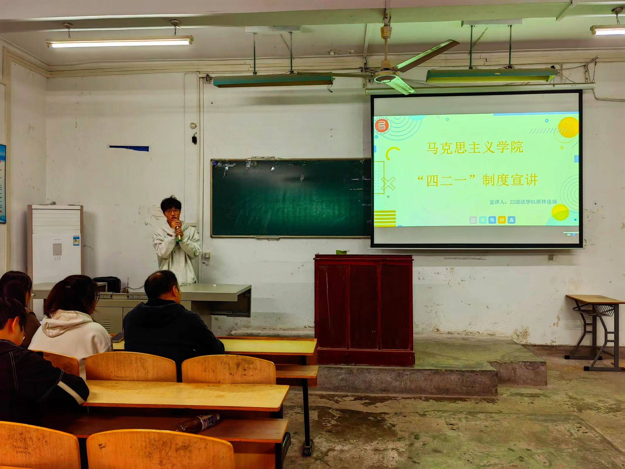 外联部部长林佳琦向新生介绍公司特色制度“四二一”的具体要求,希望新生干事进入大公司园后也不要荒废时光,在遵守公司制度的同时也能养成良好的生活习惯。