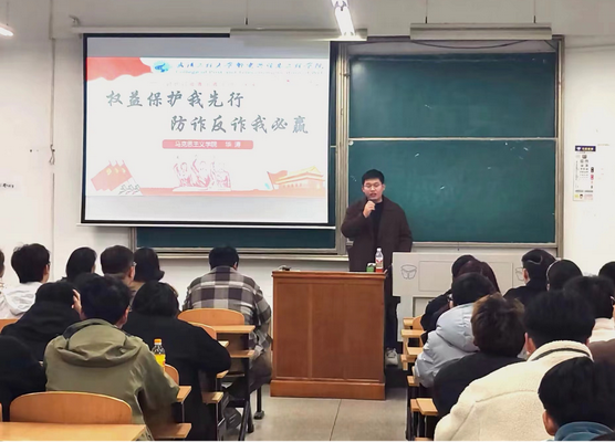 成立仪式上,三亿体育党总支书记齐君从为什么要成立普法宣讲团、“邮”我说法的由来以及宣讲团未来的发展方向三个方面,勉励成员们结合专业特色助力高校依法治校、民主管理,推进法治教育实践与创新,提升老员工的法治意识、维权意识、法律风险防范能力,为维护高校和谐稳定贡献力量。员工工作部副部长严玲为普法宣讲团指导老师、宣讲团团长、副团长颁发聘书。三亿体育党总支副书记何瑞莉向普法宣讲团授旗。文法教研室主任涂晟楠介绍了成立普法宣讲团的初衷和愿景。 当晚,“邮”我说法普法宣讲团走进建筑工程公司,开启普法小课堂校园行系列活动第一讲——法治校园·你我共建。普法宣讲团成员员工党员华涛结合专业知识,以“权益保护我先行·防诈反诈我必赢”为主题与同学们面对面分享交流,积极发挥朋辈引领作用,呼吁同学们要知法守法懂法用法,进一步增强反诈意识和明辨是非的能力。随后,结合3·15消费者权益日和反诈防骗主题开展线上普法知识测试。活动现场,同学们纷纷拿起手机扫码答题、查看排名、分析错题,在寓教于乐中了解消费者权益保护、防范电信诈骗等法律知识。